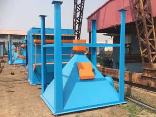 本除塵器由上、中、下箱體、排灰裝置及噴吹清灰系統(tǒng)五部分組成。上箱體包括可掀起的頂蓋和出風(fēng)口。中箱體內(nèi)有花板、濾袋組件、防爆泄壓閥、_濾袋等。下箱體有灰斗,進(jìn)風(fēng)口及檢修門(mén)。排灰裝置為重力卸灰閥或者回轉(zhuǎn)卸料閥。噴吹清灰系統(tǒng)由脈沖控制儀,電磁氣閥,噴吹管及氣包組成。
